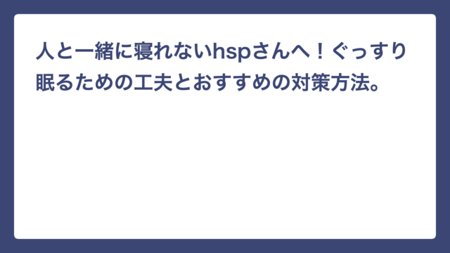 人と一緒に寝れないhspさんへ!ぐっすり眠るための工夫とおすすめの対策方法。
