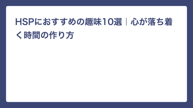 HSPにおすすめの趣味10選|心が落ち着く時間の作り方