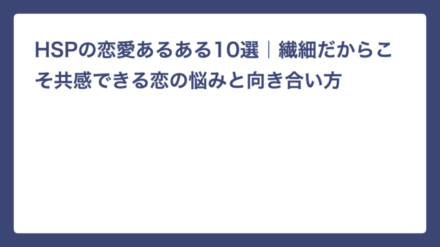 HSPの恋愛あるある10選|繊細だからこそ共感できる恋の悩みと向き合い方