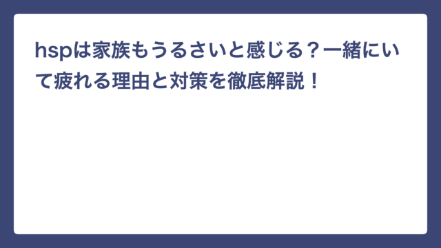 hspは家族もうるさいと感じる?一緒にいて疲れる理由と対策を徹底解説!