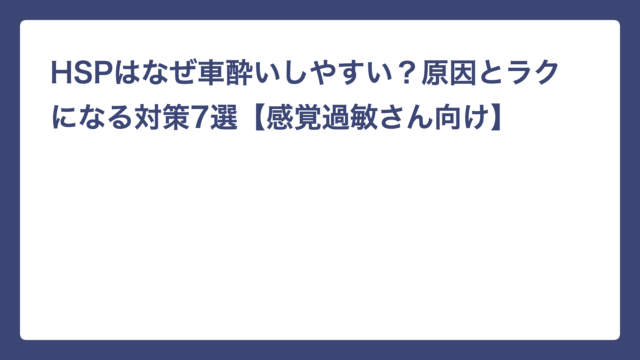 HSPはなぜ車酔いしやすい?原因とラクになる対策7選【感覚過敏さん向け】