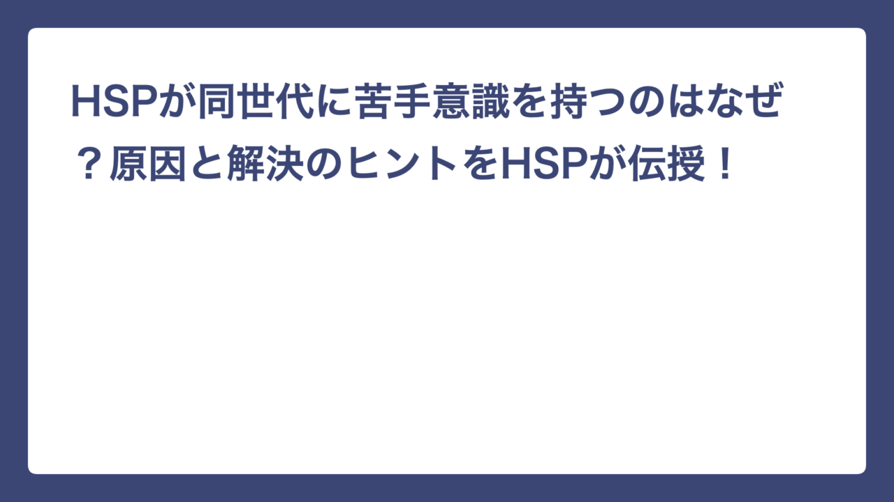 この記事では、HSPが同世代を苦手に感じる理由と、少しラクになるヒントをまとめました。
