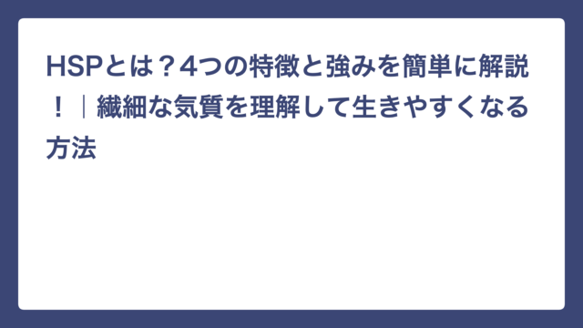 HSPとは?4つの特徴と強みを簡単に解説!|繊細な気質を理解して生きやすくなる方法