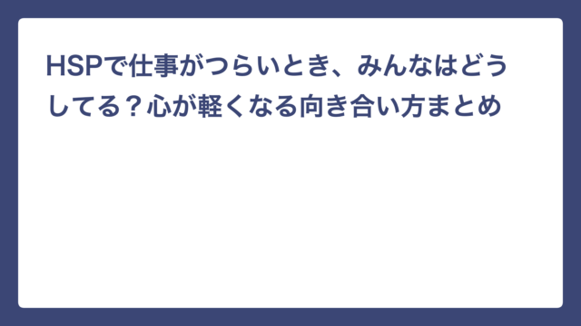 HSPで仕事がつらいとき、みんなはどうしてる?心が軽くなる向き合い方まとめ