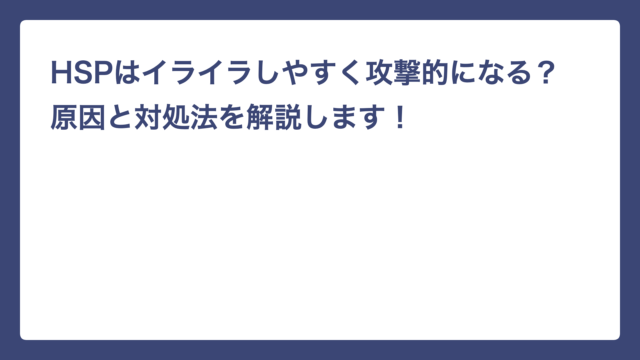 HSPはイライラしやすく攻撃的になる?原因と対処法を解説します!